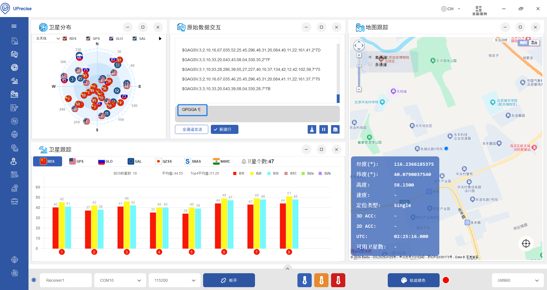 UPrecise 是和芯星通官方推出的可视化 GNSS 调试与配置工具,支持接收机状态监控、参数配置及差分数据流管理。