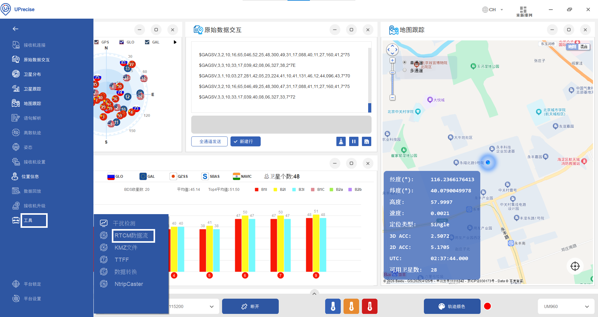 UPrecise 的工具箱中提供了 RTCM 数据流工具,操作步骤如下:
