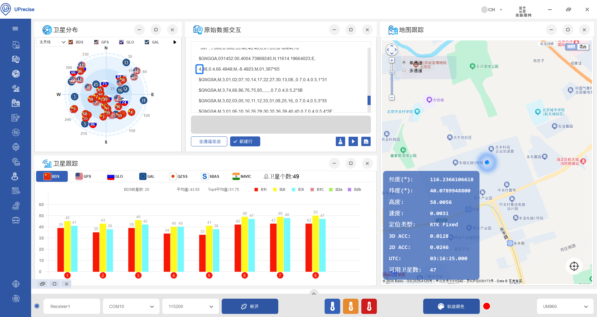 UPrecise 是和芯星通官方推出的可视化 GNSS 调试与配置工具,支持接收机状态监控、参数配置及差分数据流管理。