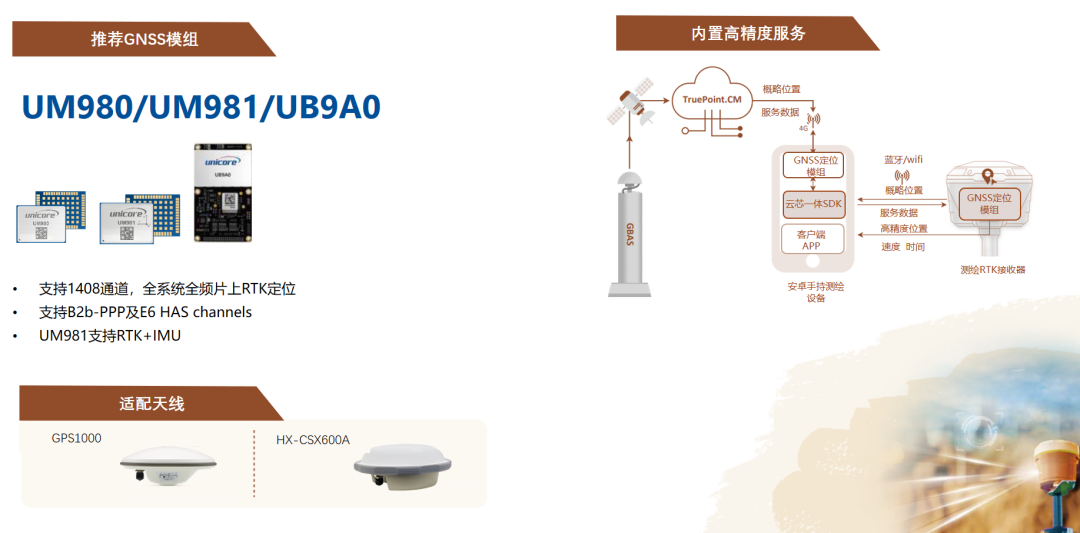 围绕北斗星通集团以“云+芯”为基础的“位置数字底座”战略布局,和芯星通聚焦在时空数据之“芯”,适配真点科技最新发布的TruePoint.CM(厘米级定位服务)及TruePoint.DM(分米级定位服务),以紧耦合方式实现“云+芯”协同,基于云芯一体优势,芯片可接收云端或星基的精密数据,实现实时的厘米级高精度定位,大大简化高精度定位的design in过程,降低成本,提高运营效率与可靠性。